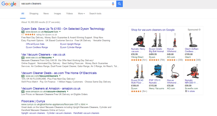 When you search on Google for physical products. For example, "Vacuum Cleaners" Google will return the results and you will see the products displayed with an image. When a customer clicks on your product listing you are charged a click through costs by Google, similar to Google Addwords.